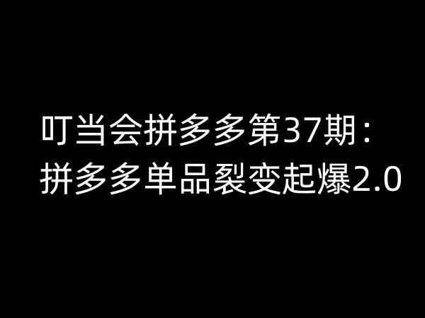 0 自媒体电商 2025年9月12日 由 W82P · Published 2025年9月12日 叮当会拼多多第37期:拼多多单品裂变起爆2.0 01.《拼多多单品裂变起爆2.0》非标品类成功操作案例.mp4 02...