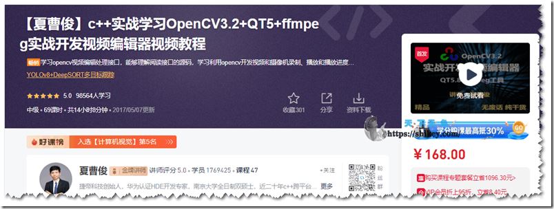 0 更多 2023年11月29日 由 W82P · Published 2023年11月29日 51CTO c++实战学习 OpenCV3.2+QT5+ffmpeg实战开发视频编辑器视频教程 课程基于opencv**版3.2讲解,全部使用**的c++接口,旧的...